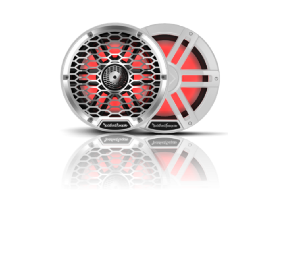 The M2-65B Color Optix™ 2-way 6.5” speakers deliver loud, clear, accurate sound, and light the way for your journey! The speakers connect with the Rockford Fosgate Color Optix™ Controller and RF Connect App, allowing you to customize your own color patterns. The Element Ready™ design and IPX6 certification makes them truly purpose-built for marine or motorsport applications where protection from damaging UV rays and water spray is essential. Includes standard and stainless steel grille inserts. Sold in pairs (2 each).